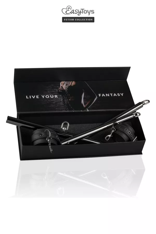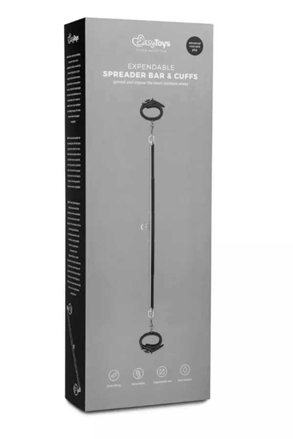 Beschränken Sie die Bewegungen Ihrer Eingabe mit der "Expendable Spreader Bar und Manschetten" Bar Easytoys Fetish Collection, eine metallische, verstellbare, hochwertige schubstange und ihr paar abnehmbarer lederhandschellen.
