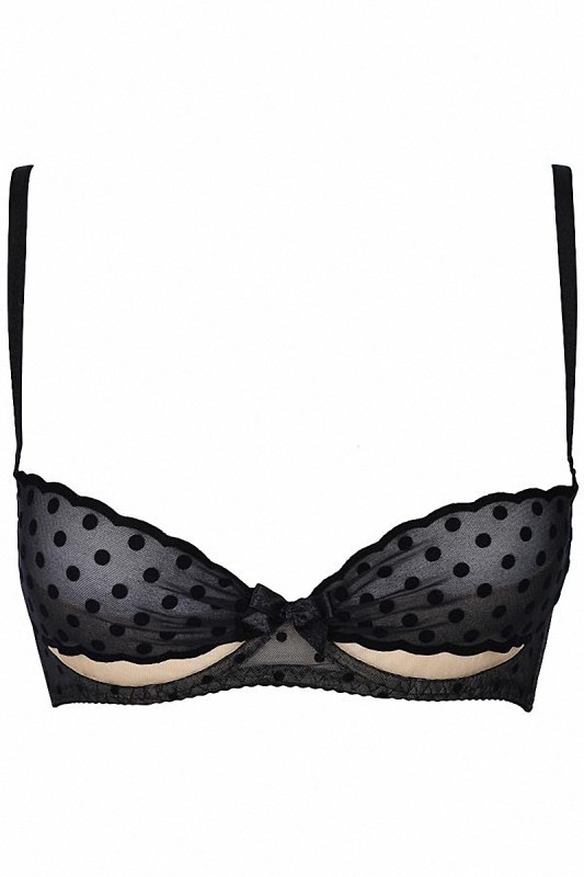 Schwarzer Tüll-BH mit Punkten und beige Tüll