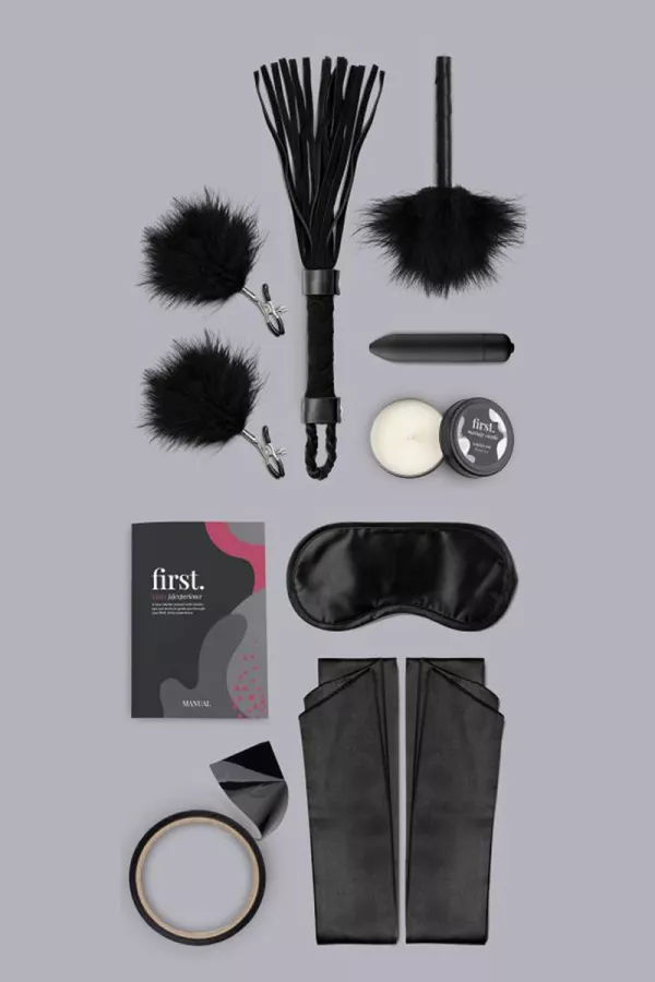 Die "First Experience Kinky" Box der Marke Loveboxxx, ist eine Box mit 8 Accessoires und Sexspielzeug für Männer, Frauen und Anfänger Paare, die gut in der Welt der BDSM und kinky Spiele zu starten.