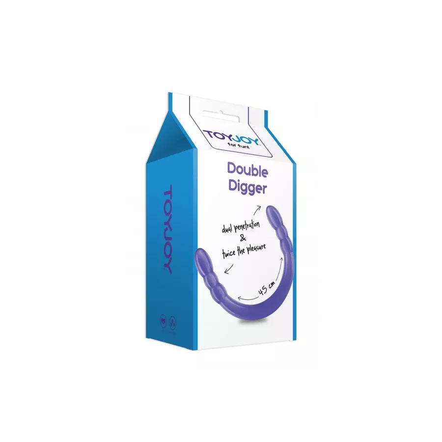 Der Double Digger Dong von TOYJOY Classics ist ein Zwei-End-Dildo, entworfen für Solo oder zwei Vergnügen. Incurved Design ist es ideal, die vaginale und anale Doppeldurchdringung allein zu üben, aber es ist flexibel und lang genug (45 cm) um gleichzeitiges Eindringen zu zwei Partnern zu ermöglichen. Seine zwei verblendeten Enden ermöglichen es Ihnen, Stimulation und Empfindungen zu erhöhen.