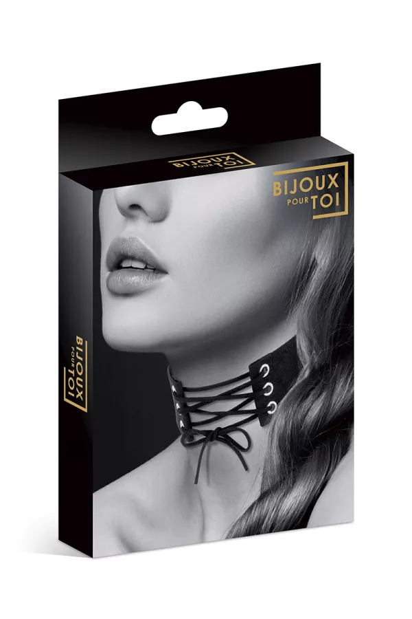 Mit seinem Schnürverschlusssystem auf der Vorderseite, dieser schwarze Kragen, voller Hals, der Marke Bijoux pour toi wird ihnen einen sehr frechen blick geben.