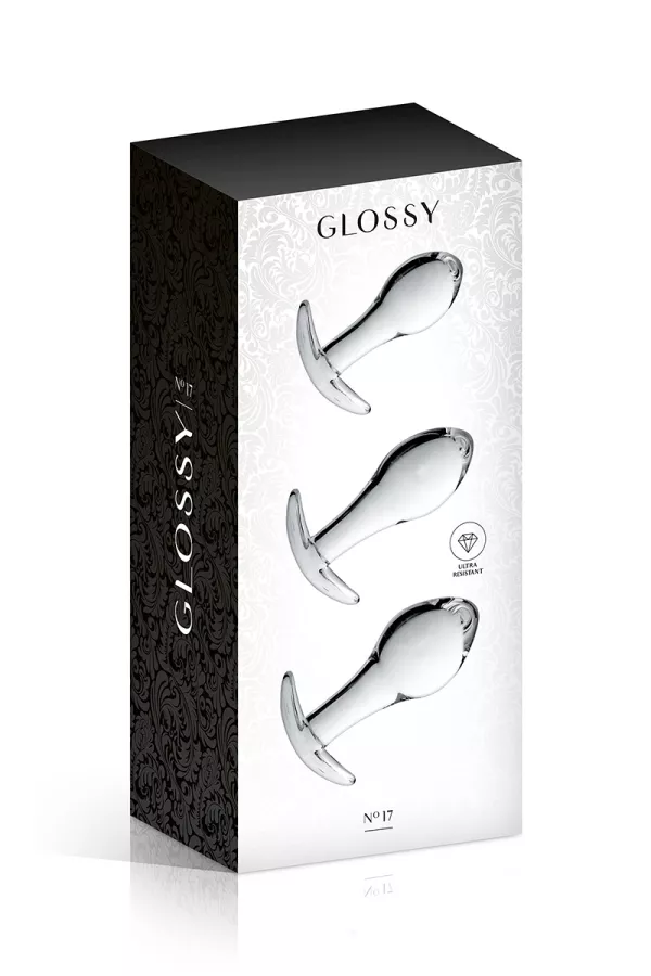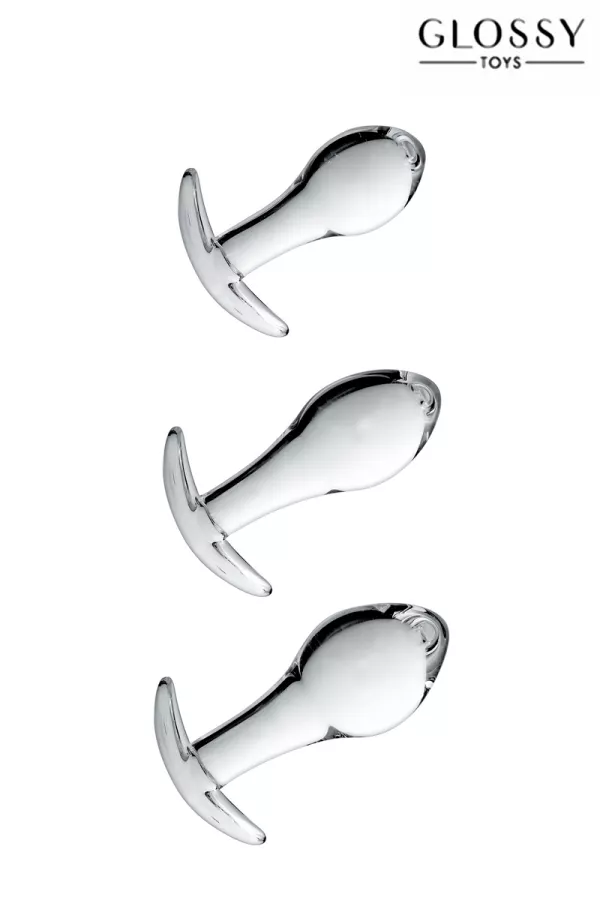 Box mit 3 hochwertigen Analplugs Glossy Toys, in unzerbrechlichen glas, verschiedene längen und größen, ihnen mehr oder weniger intensive empfindungen je nach ihren wünschen anbieten.