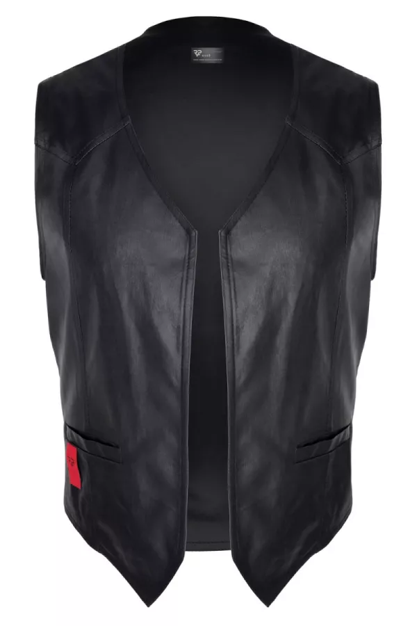 Auf der Vorderseite zeichnen sich die Nähte durch ihr dreieckiges geometrisches Muster aus. Auf der Rückseite findet im Boden der Weste ein Gürtel statt, der mit einer dekorativen Metallschnalle passt. Die horizontalen und vertikalen Nähte im Rücken bewirken einen dünnen Effekt.