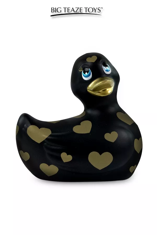 Die berühmteste pulsierende Ente der Welt: "I Rub My Duckie Big Teaze Toys, wird in der "Romance" Ausgabe präsentiert und genauer in schwarzer Version mit goldfarbenen Herzen bedeckt. Das überarbeitete Design macht es aktueller und lustiger.