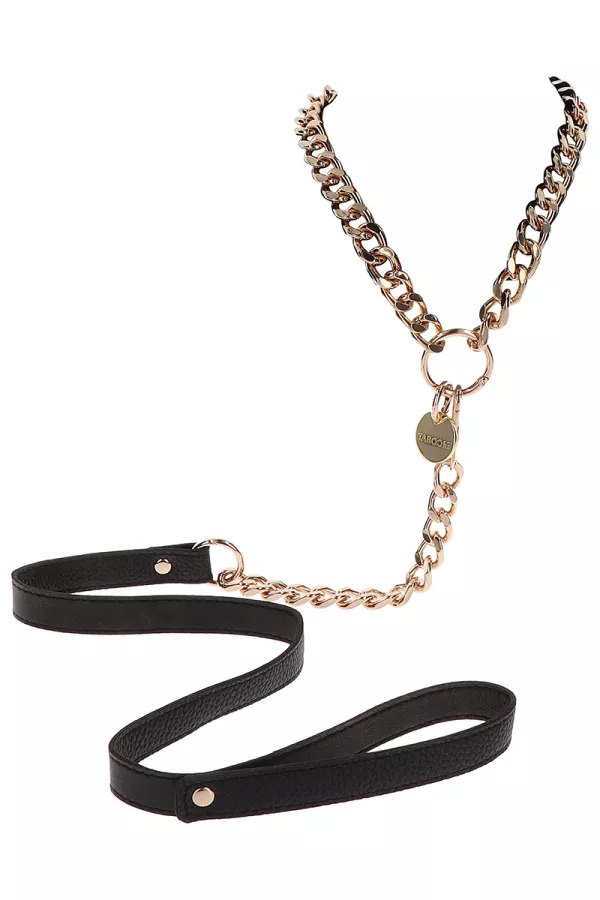 Composed of a gold-pink metal chain and a PU black leather part, the left Statement is the ideal object to enhance your BDSM games. Use the leash in combination with the DONA Statement collar to complete your outfit.