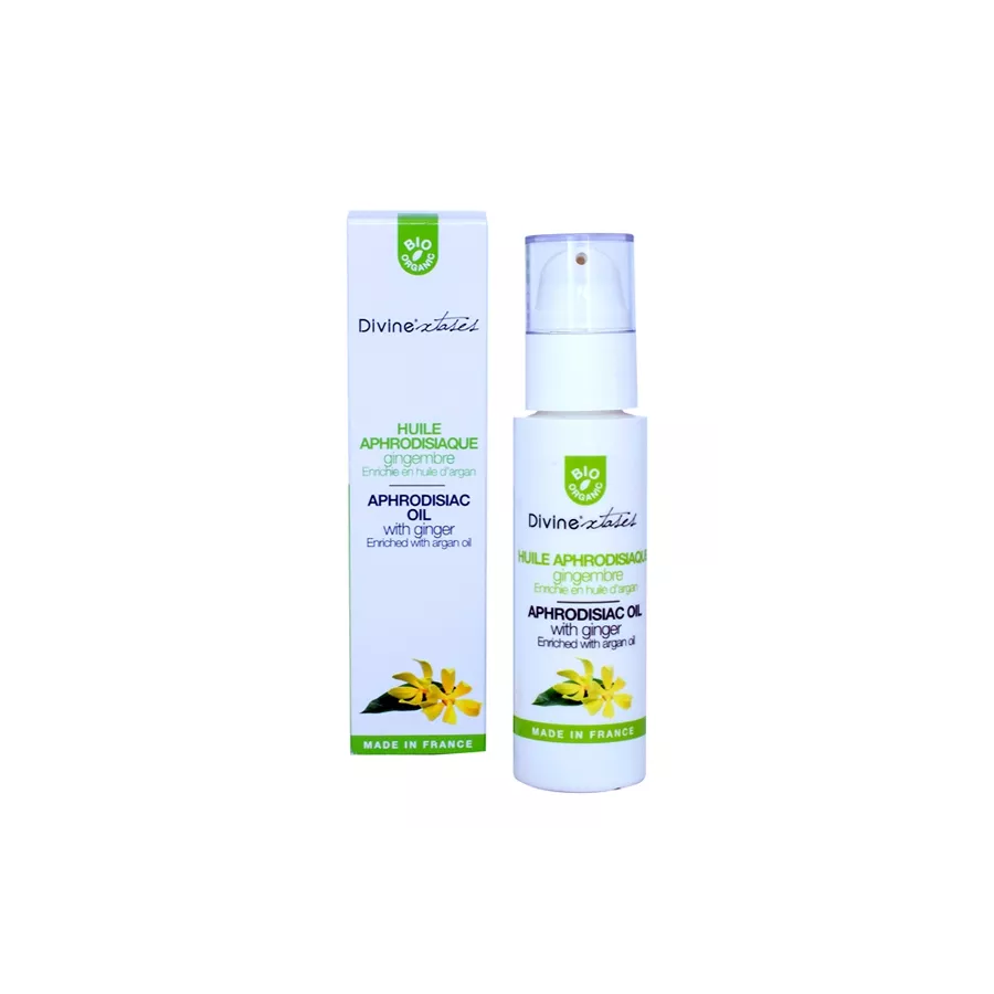 Aphrodisiac oil 100% French and organic, by Divinextases - it stimulates your erogenous zones and its fragrance fills your senses.