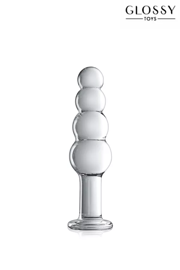 A luxurious translucent unbreakable glass sex toy, equipped with 4 increasingly large stimulating balls, a long and thick stem and a wide base, making it ideal for anal penetration practice.