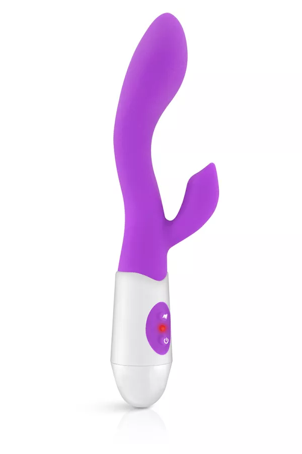 Rabbit Naya vibrator (purple colour) of the brand Yoba is a quality sex toy dedicated to feminine pleasure. At the same time, it stimulates the vagina, especially the point G area thanks to its curved shape and extended head, and the clitoris thanks to its small, stimulating judiciously placed ergot.