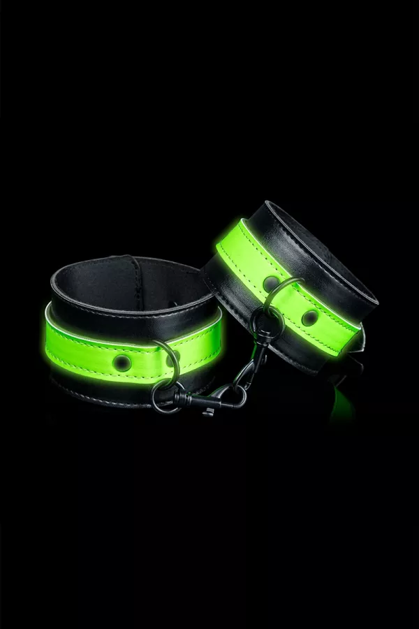 Ouch! Glow in the Dark, the future of bondage has arrived. Designed with an authentic bondage aesthetic, but presenting the advantage of shining in the dark, the phosphorescent green details will transform each event into a party.