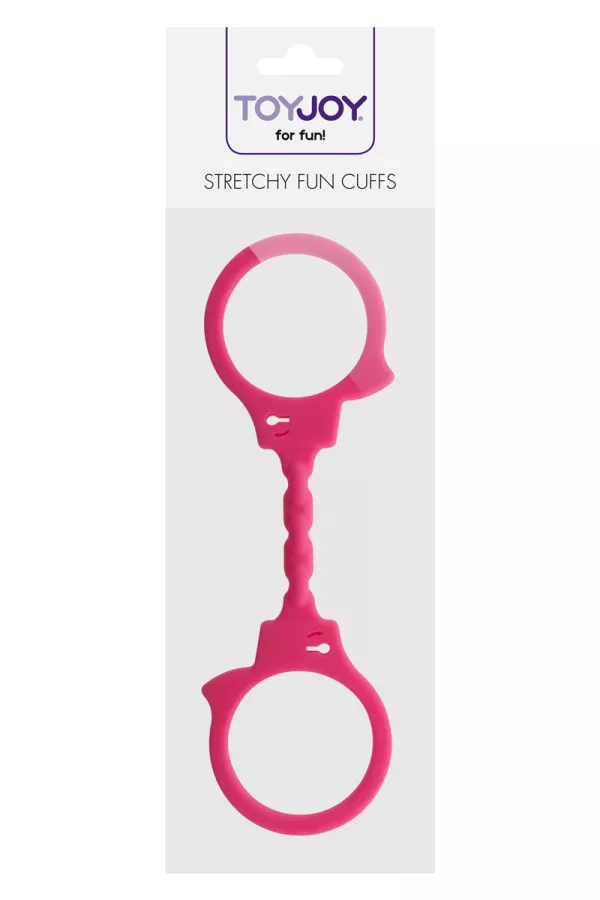 The Stretchy Fun Cuffs, from the brand Toy Joy, are pink handcuffs made of extensible silicone, ideal for making your fantasies of submission and domination, this without any risk of hurting you.