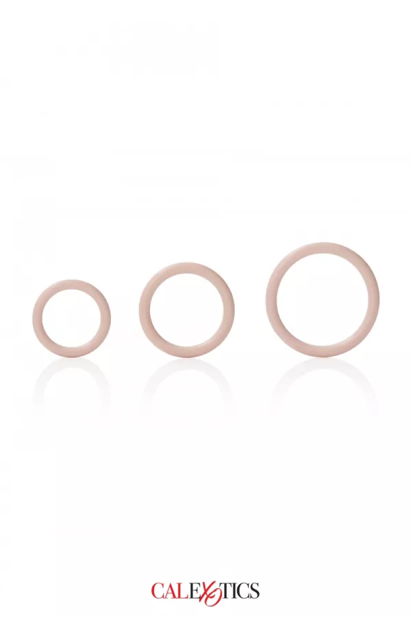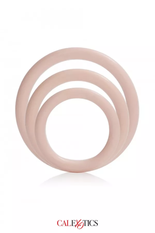 the Silicone Support Ring pack Calexotics contains 3 rings of different diameters: 3.25 cm, 3.5 and 4.5 cm. The rings are made of high quality silicone. They are stretchable, comfortable to wear and can be used as cockrings, ballrings or for any other use.