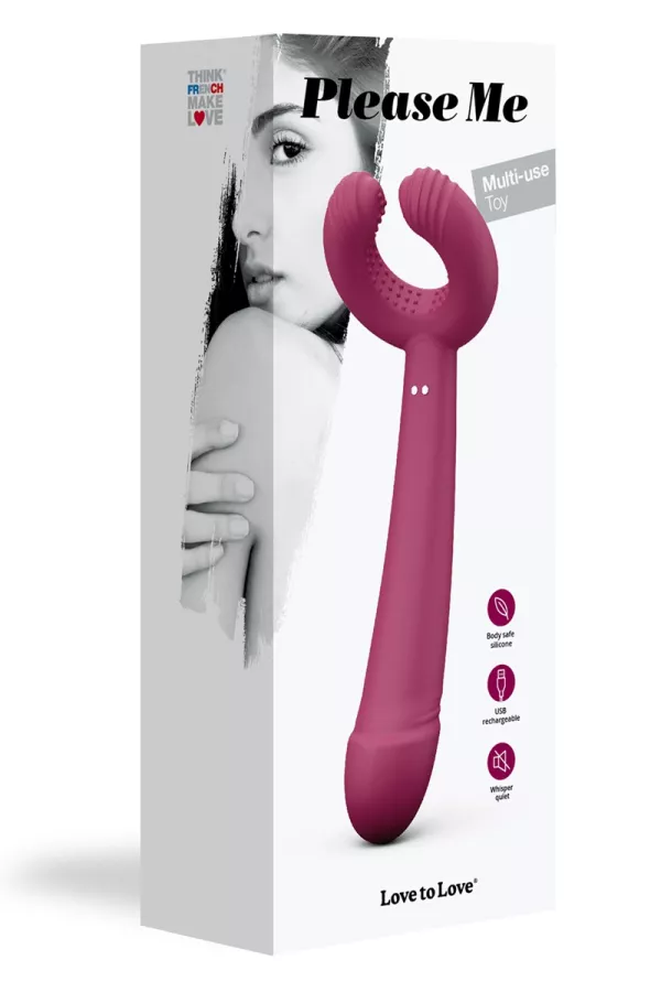High quality versatile Sextoy, the multi-function Stimulator "Please Me Love to Love adapts to each of your desires: a vibrator side, a masturbator side for him, and the possibility to use it as an extra male partner and practice double penetration in couple.