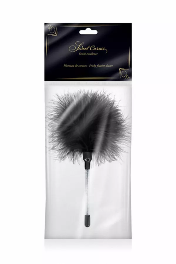Petit plumeau noir très doux en plume de dinde, proposé par la marque Sweet Caress, pour caresser votre amoureux (se) sur ses zones les plus sensibles.