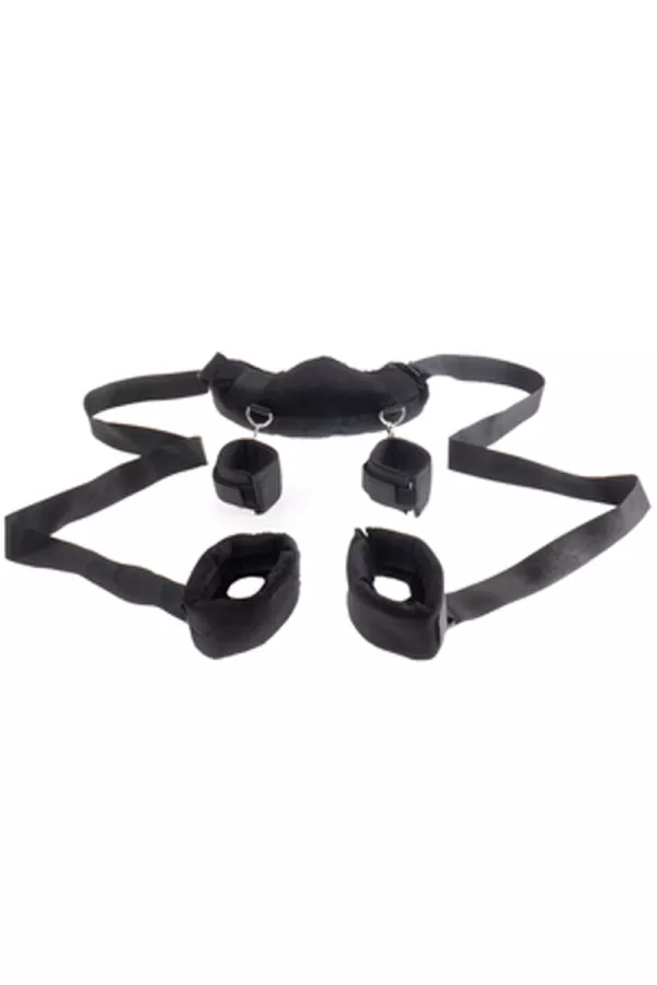 Le harnais se passe autour du cou ou derrière la nuque en fonction de votre position favorite. Les sangles en nylon sont robustes et réglables. Elles relient le harnais aux menottes de chevilles et maintiennent fermement vos jambes en position. Ainsi, vous ne risquez pas de vous fatiguer au moment où ça devient le meilleur!