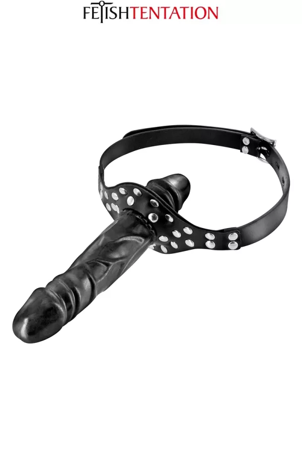 Ce bâillon "Pénis Double" Fetish Tentation oblige votre soumis (e) à garder en bouche un gode réaliste en forme de gland tout en vous donnant du plaisir grâce à un second gode externe fixé au baillon.