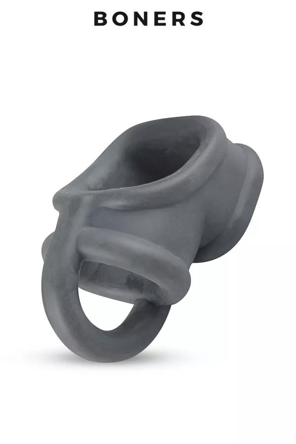 Le séparateur de testicules pousse le pénis vers l'avant et tire les testicules vers le bas tout en les écartant. Cela donne un look unique et provocateur et offre une sensation agréable.