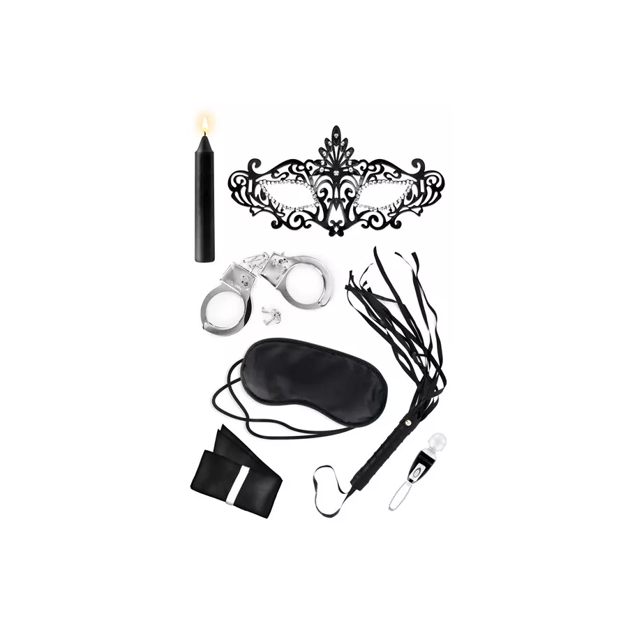 Coffret d'initiation aux jeux et plaisirs de la soumission contenant 7 accessoires Fetish SM.