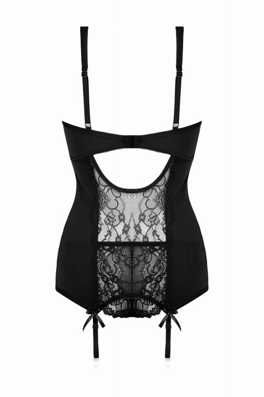 Cet ensemble se compose d'une guêpière et d'une culotte en dentelle assortie. La guêpière comporte des bonnets en dentelle avec armatures ainsi que des bretelles et des jarretelles réglables. Elle est entièrement conçue avec des matières élastiques et souples offrant un ajustement confortable et une silhouette parfaite.