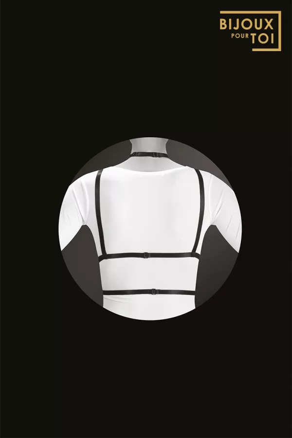 Ce harnais de poitrine se porte sur vos vêtements, vos dessous ou à même le corps et vous donnera un look Fetish Glamour qui charmera votre entourage, que ce soit en public ou dans l'intimité.