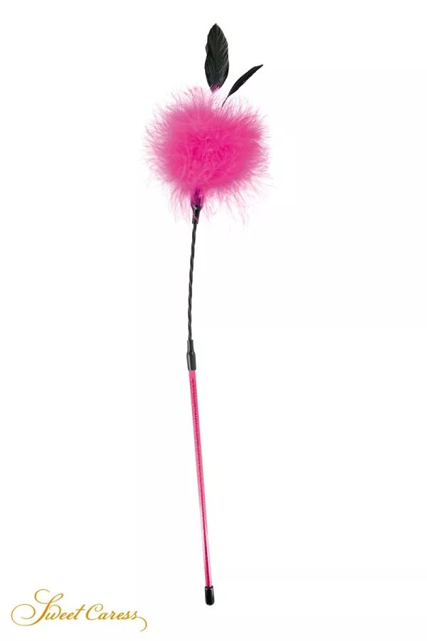 Un plumeau rose très girly avec de vraies plumes à son extrémité pour torturer de plaisir votre partenaire, par Sweet Caress.