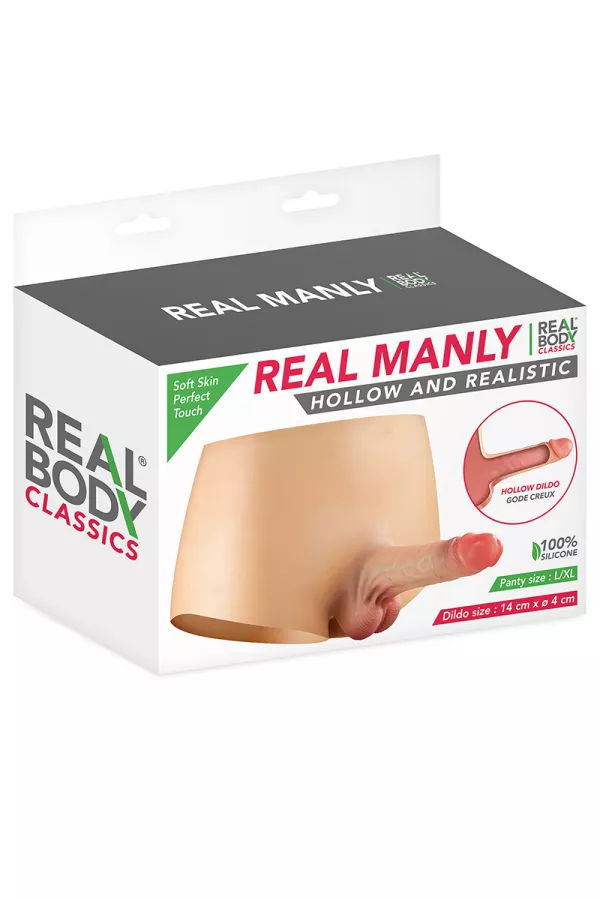 Plus confortable qu'un gode-ceinture, la culotte gode "Real Manly Hollow and Realistic" 100% silicone premium est souple, confortable et ultra extensible. Disponible en 2 tailles, elle s'adapte à toutes les morphologies.