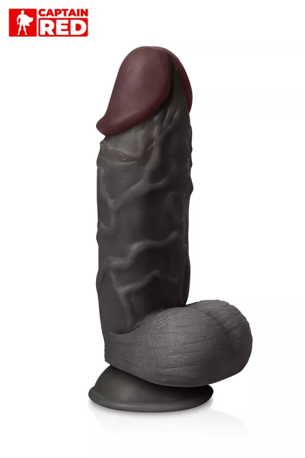 The Strong Black, de la marque Captain Red, est un gode noir géant (26 x 6,5 cm) très réaliste, doté d'une texture douce et souple en TPE haute qualité, réservé aux amatrices et amateurs de sensations fortes.