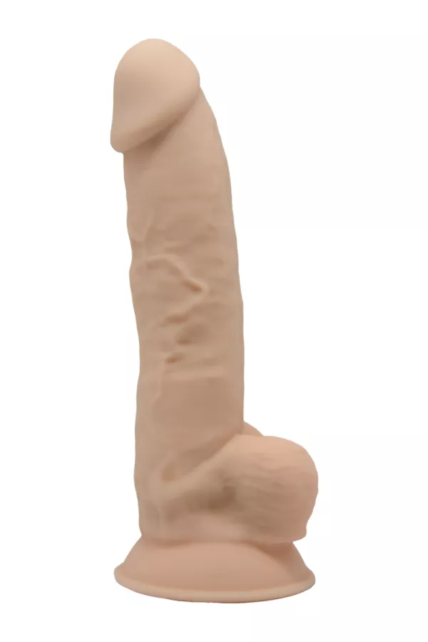 La verge est veinée et droite, tandis que le gland est bien prononcé pour accroître les sensations. Les testicules sont bien dessinées et accentuent le réalisme du dildo.