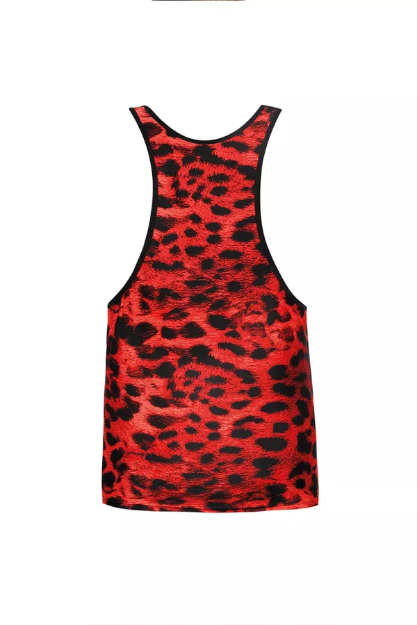 Ce débardeur sexy est fabriqué en Tissu doux, rouge et noir au motif animal.