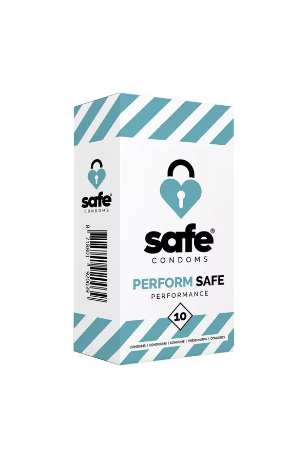 Les préservatifs Safe Performance (boite de 10 préservatifs) diminuent légèrement la sensibilité du pénis. Ils permettent ainsi de ralentir la montée de l'orgasme masculin et de lutter naturellement et efficacement contre les problèmes d'éjaculation précoce.