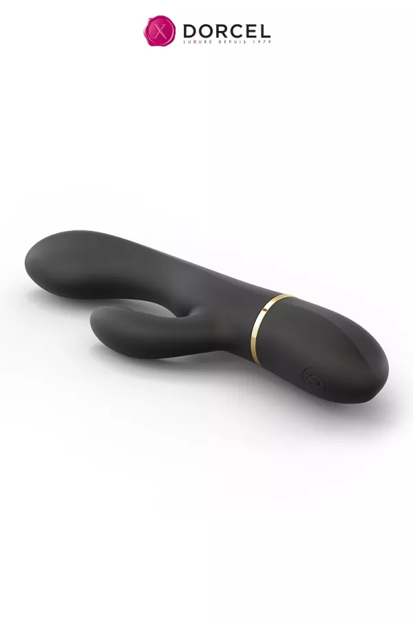 Très connue pour ses sextoys de qualité, la célèbre marque Dorcel à décidé de vous proposer de double stimulateur pour le point G et le clitoris en version noire très élégante décorée dune bague dorée à sa base.