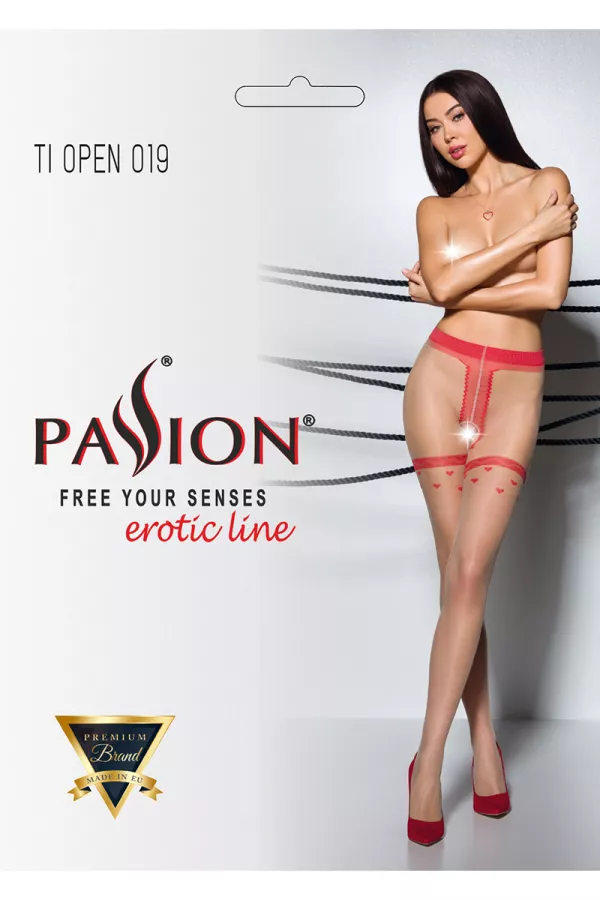 La fantasia sensuale, questi collant disegnano l'occhio verso l'apertura intima foderata con filo rosso che rivela ampiamente la pelle nuda dell'inter-jamb.