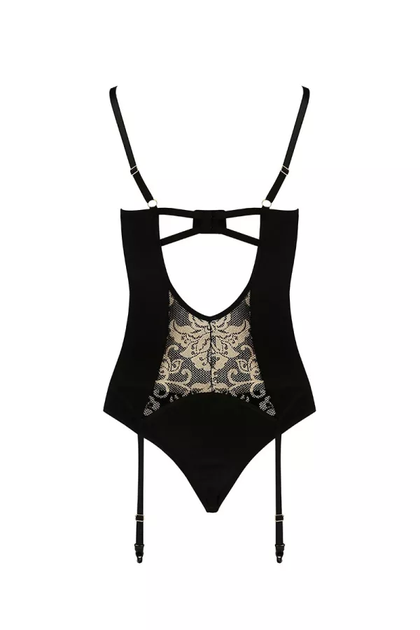 La morbidezza dei tessuti e lo stile fantasy di questo set con calze ripristina il vostro piacere di indossare una lingerie incarnazione di femminilità.