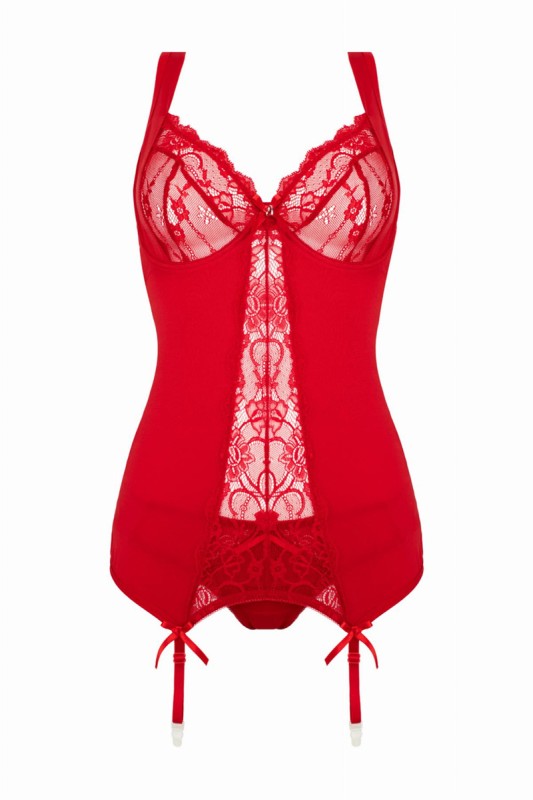 Il corsetto comprende tazze in pizzo con cornici e cinghie regolabili e cinghie. Completamente composto da materiali elastici e flessibili, offre una vestibilità precisa e confortevole.