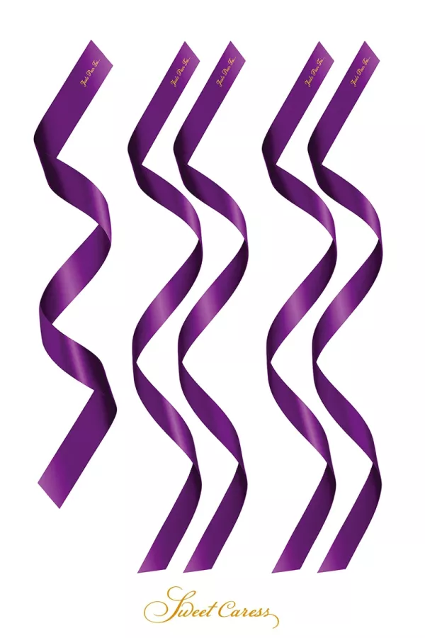 I 5 legami sono in raso viola, con l'iscrizione "solo per voi" stampata su ciascuno di loro.