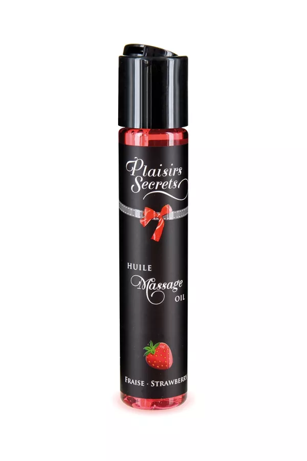 Olio di massaggio con gusto squisito Fragola per piaceri cattivi condivisi.